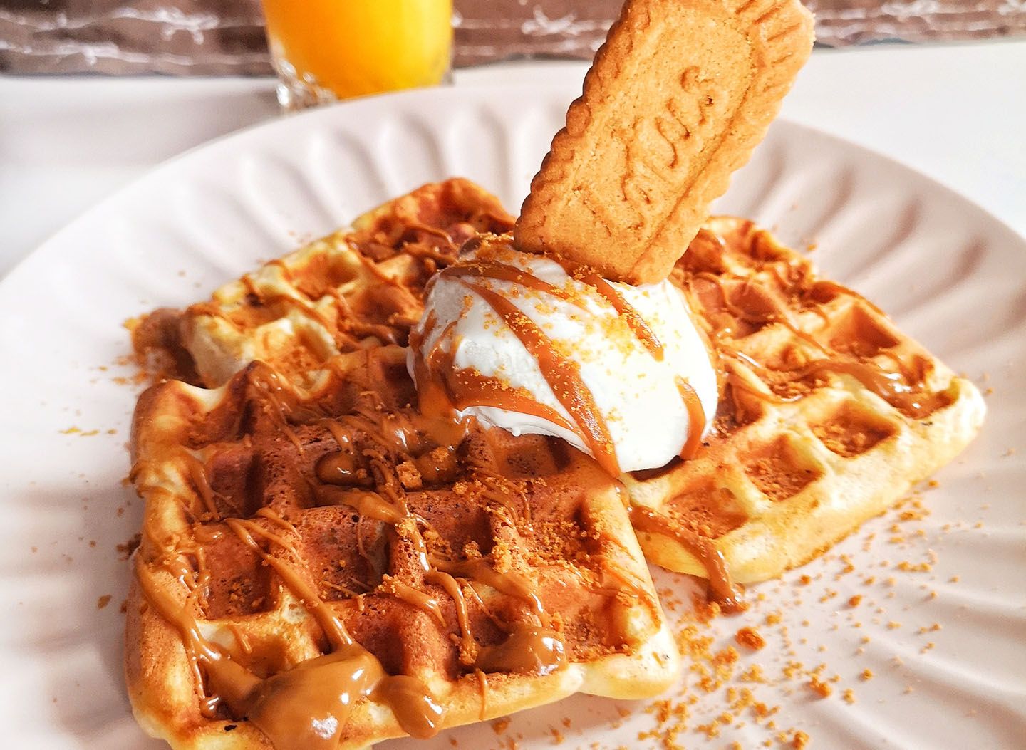 Crushed Lotus Biscoff, chocolate sauce & salted caramel sauce