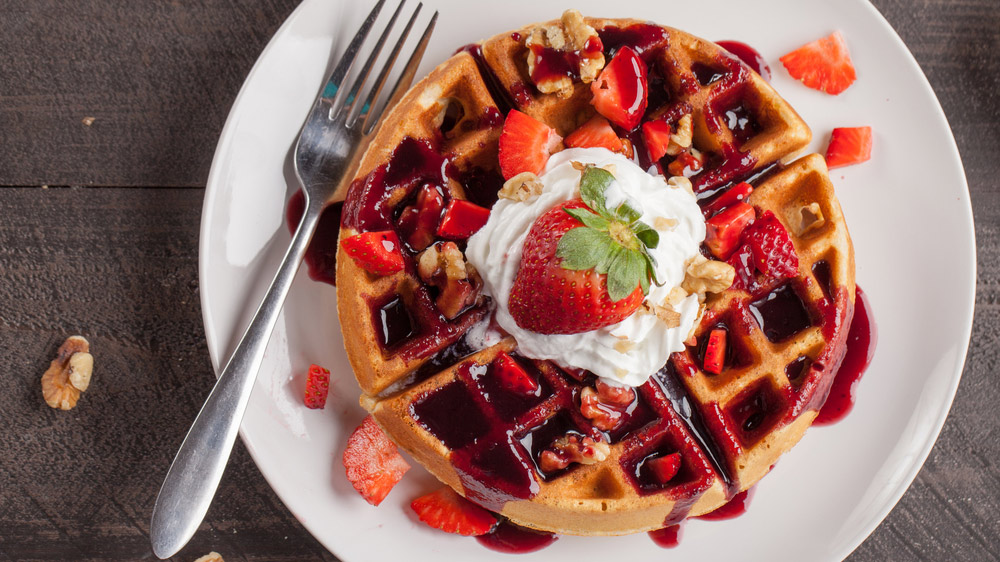 Waffle with Nutella, Crushed Nuts and Ferrero Rocher topped with Chocolate Sauce