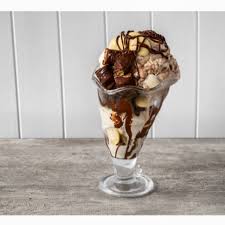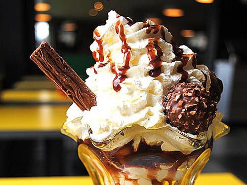 Layers of Vanilla ice cream topped with Ferrero Rocher pieces, Crushed Nuts, Nutella, Chocolate Sauce and Whipped Cream
