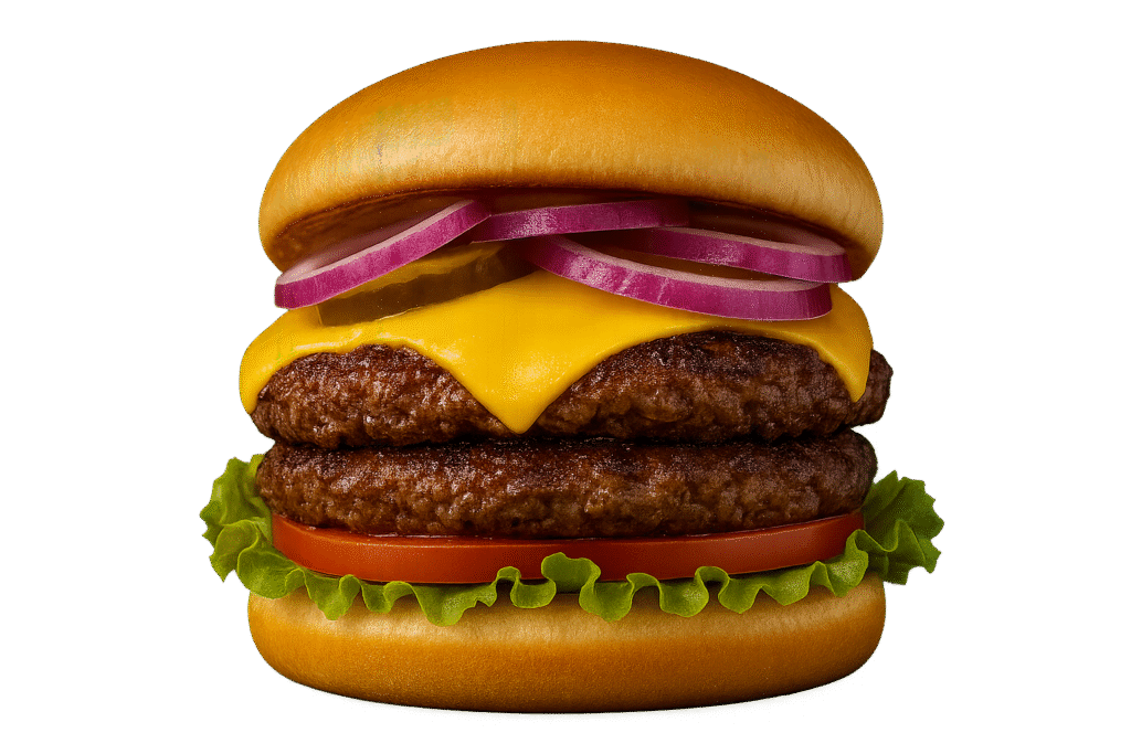 Double Juicy Smashed Steak Patties, Thinly sliced Onions, Cheese, Lettuce, Tomato, Pickles and our Signature Burger Sauce