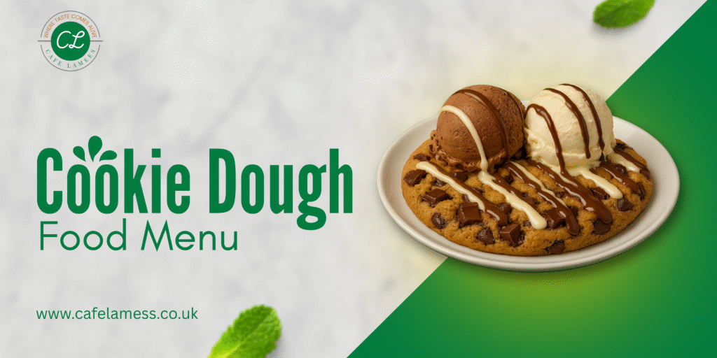 Cookie Dough covered in crushed Lotus biscuits topped with Chocolate and Lotus Sauce