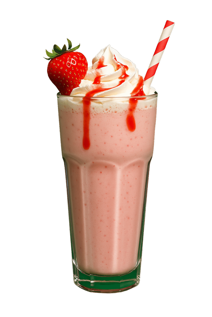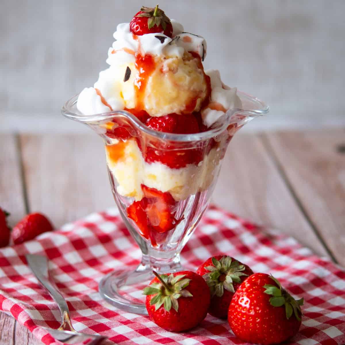 Strawberry Ice-Cream, Strawberry Syrup, Fresh Cream & White Chocolate Sauce