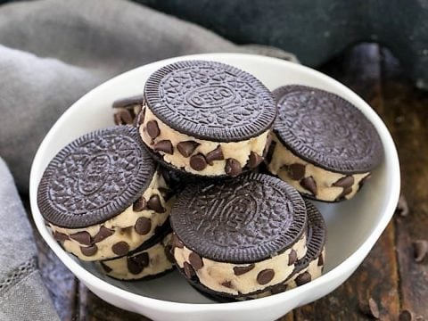 Cookie Dough covered in crushed Oreos topped with White Chocolate and Chocolate Sauce