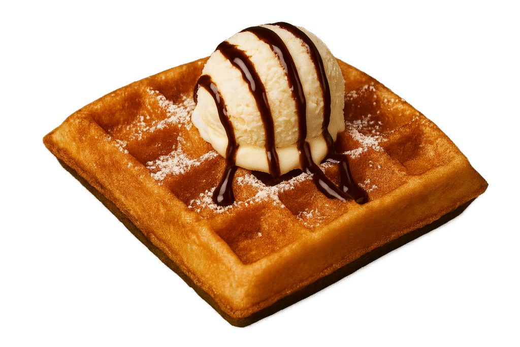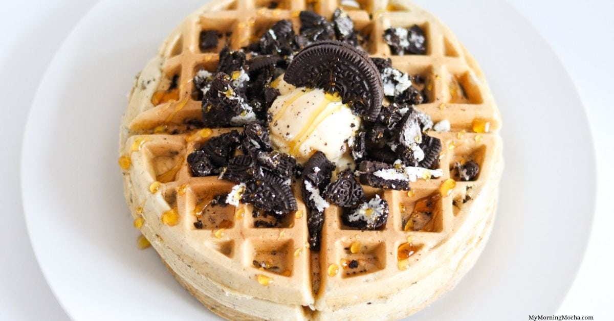 Waffle with White Chocolate Sauce and Crushed Oreos topped with Chocolate Sauce