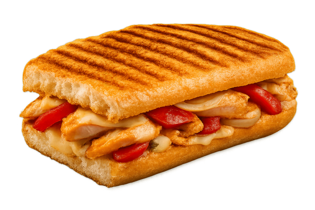 Grilled chicken, Onions, Red Peppers and Cheese
