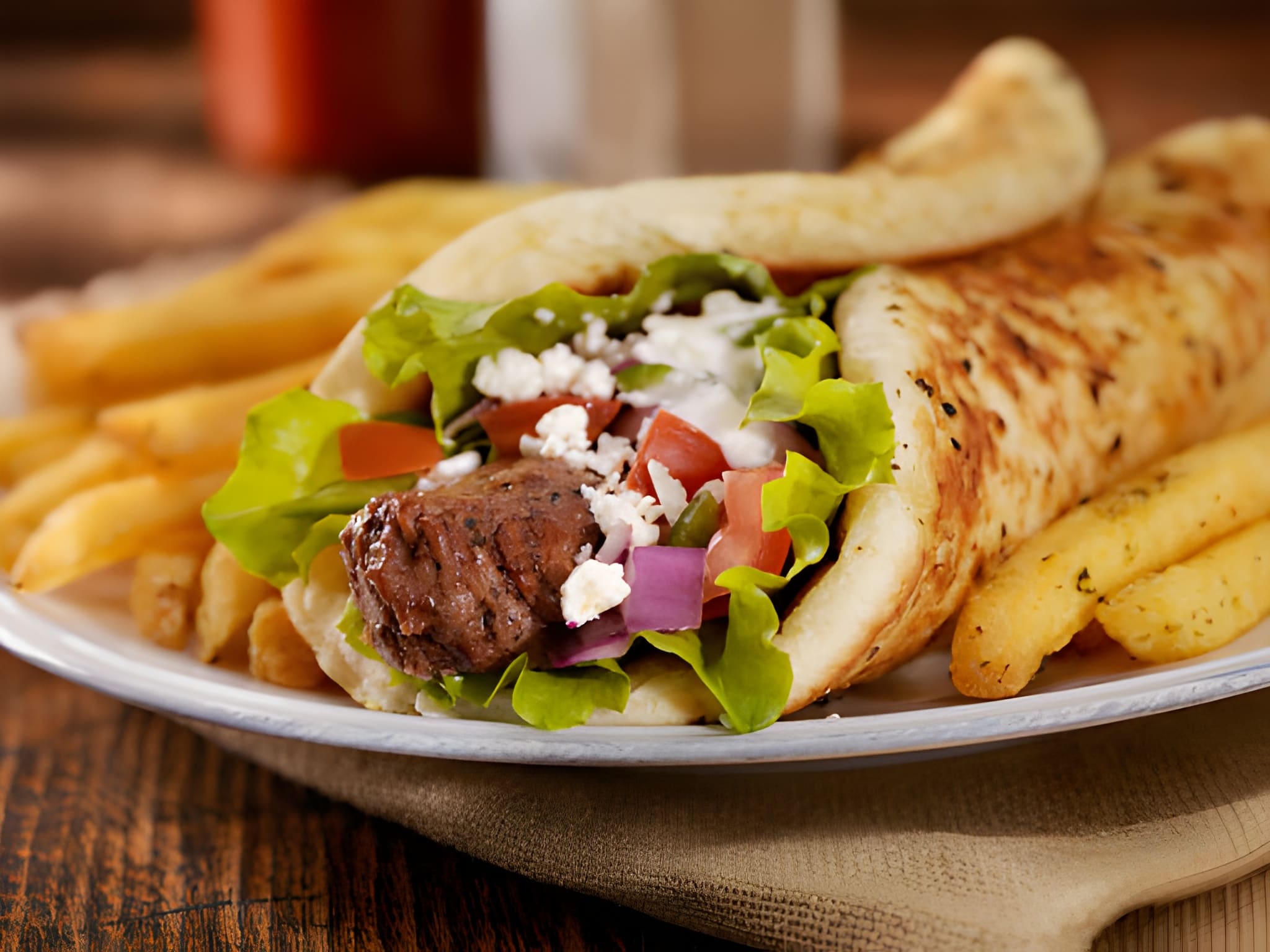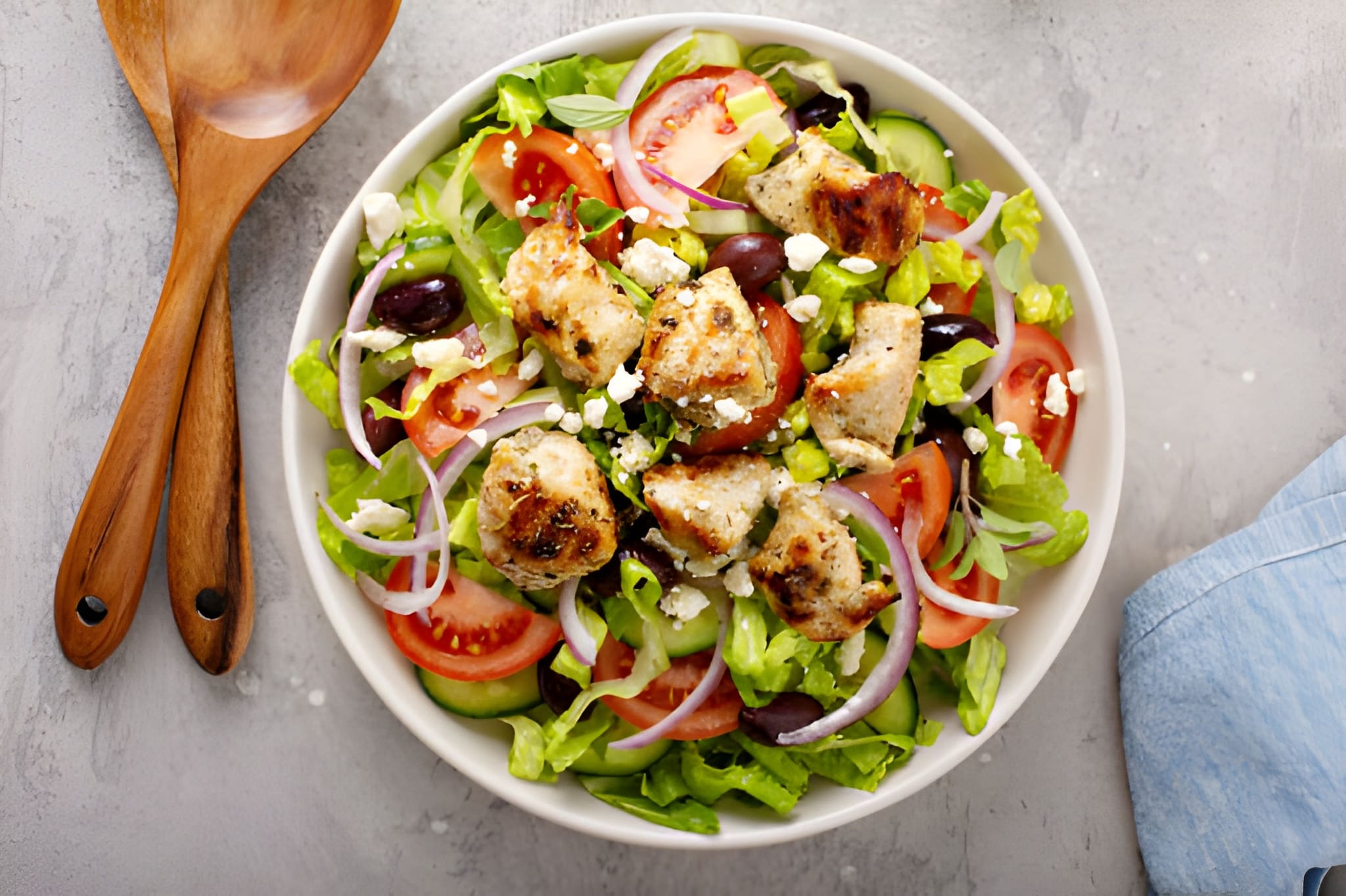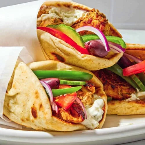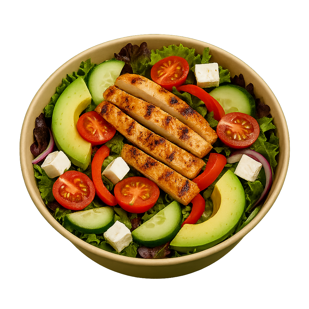 Grilled Chicken, Lettuce, Cucumber, Tomatoes, Red Onions, Mixed Pepper, Feta Cheese, Olives, Dressing and our Buffalo Ranch Sauce