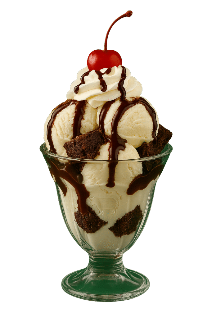Triple Chocolate Brownie chunks blended with Vanilla IceCream & decorated with Milk Chocolate Sauce
