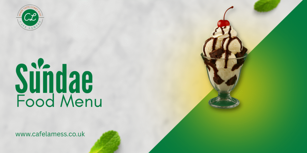 Layers of vanilla ice cream topped with crushed Lotus Biscoff, Lotus sauce, white chocolate sauce and whipped cream