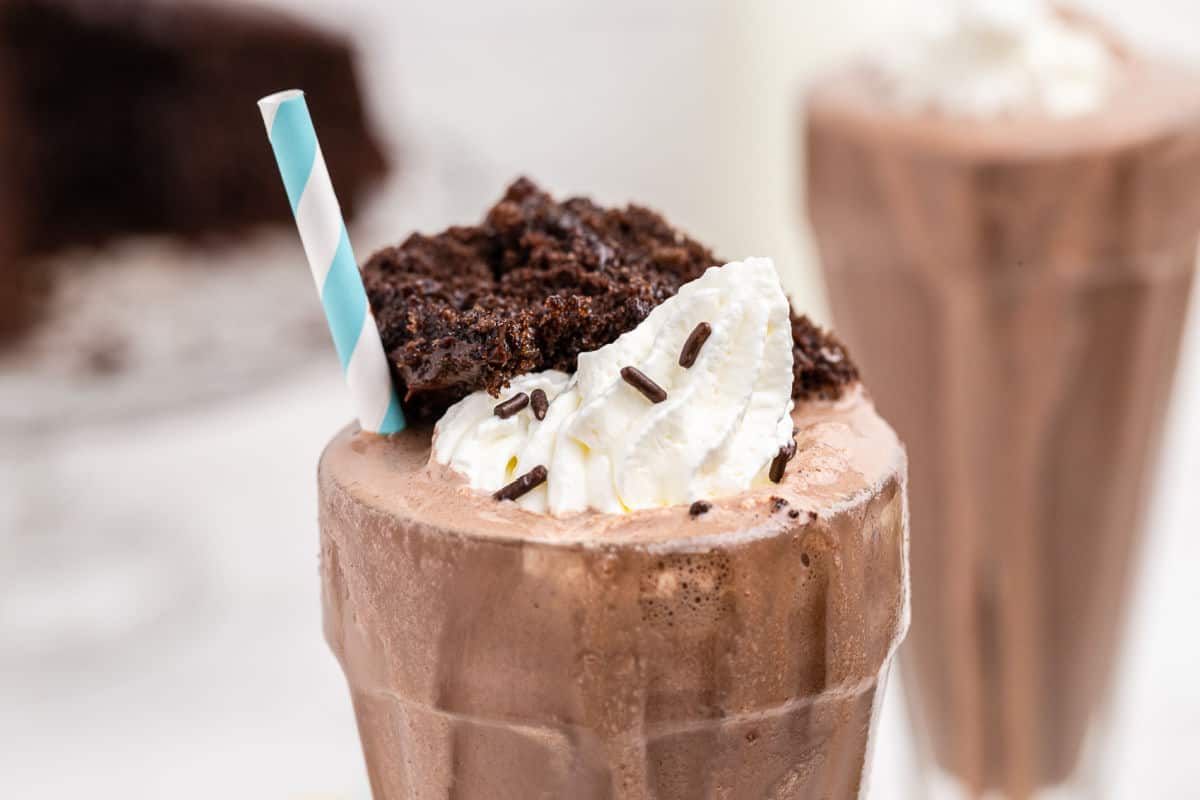 Luxury Fudge Cake Pieces, Blended with Vanilla Ice-Cream & topped with Cake Pieces