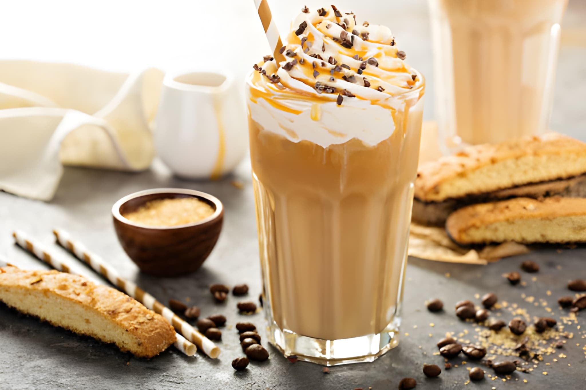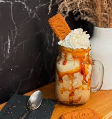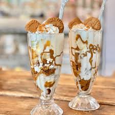 Biscoff spread, Nutella, Vanilla Ice Cream & Milk, Finished Chocolate Sauce, Topped with Crushed Biscoff