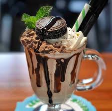 Aeromint milkshake blended with Vanilla Ice-Cream & decorated with Milk Chocolate Sauce
