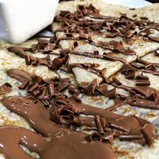 Freshly made hot Crepe, drizzled with White Chocolate and Sprinkled with White Chocolate Flakes