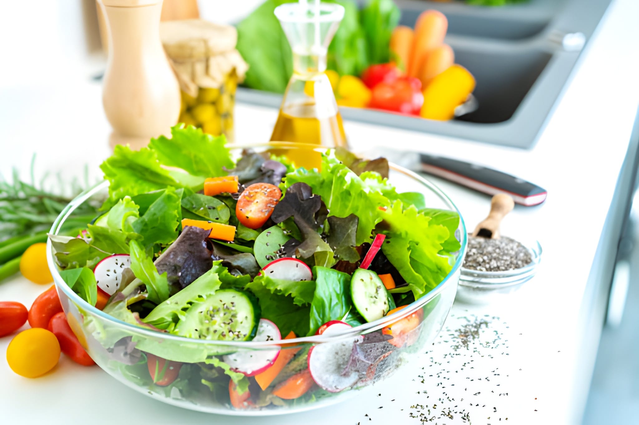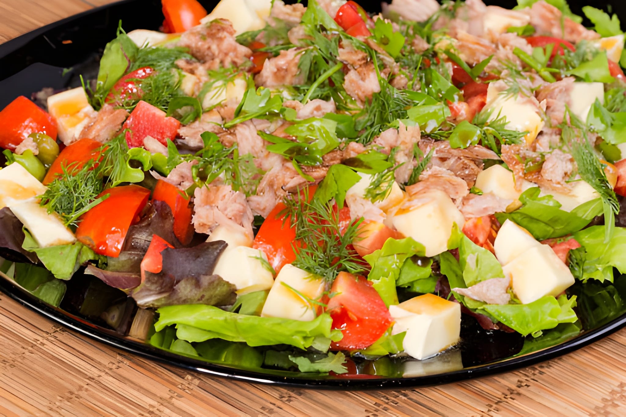 Tuna, Lettuce, Tomatoes, Spinach, Red onions, Reddish and Dressing