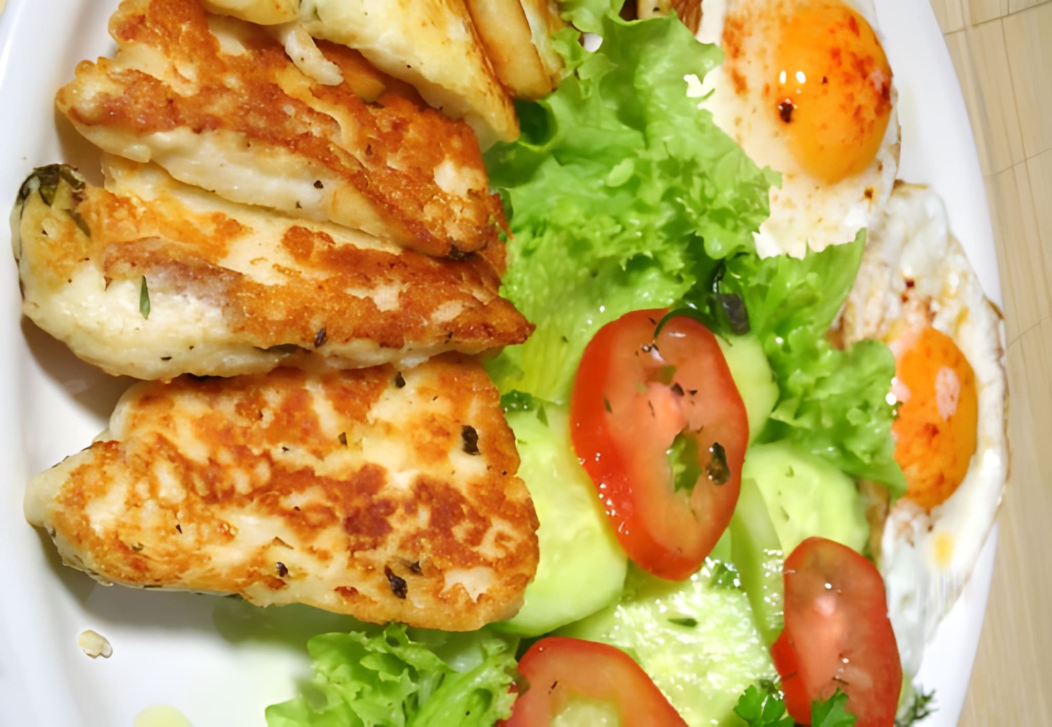 2x Slices of Toasted Bread, Halloumi, Garlic Spinach, 2x Eggs with seasoning