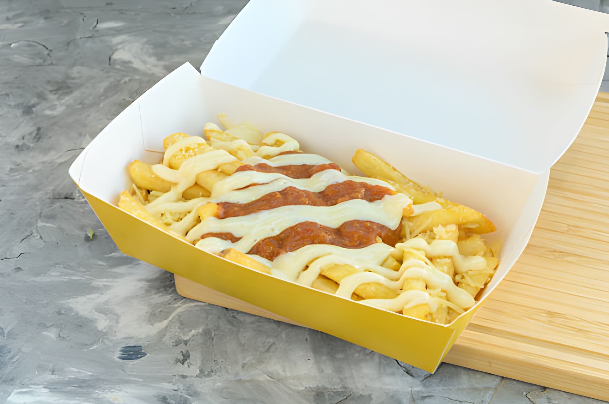 Fries loaded with Cheese, Red Onion, Jalapenos, Spring Onions and Special signature sauces