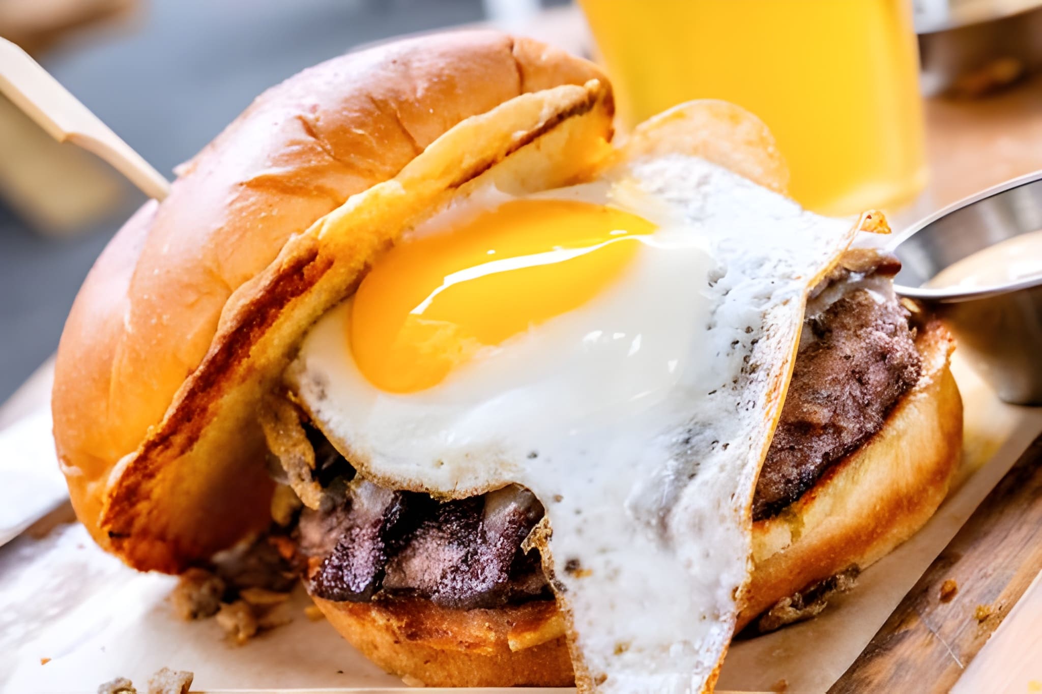 Double Juicy Smashed Steak Patties, Fried Egg, Cheese, Lettuce, Tomato, Onion, Pickles, and our Signature Burger Sauce