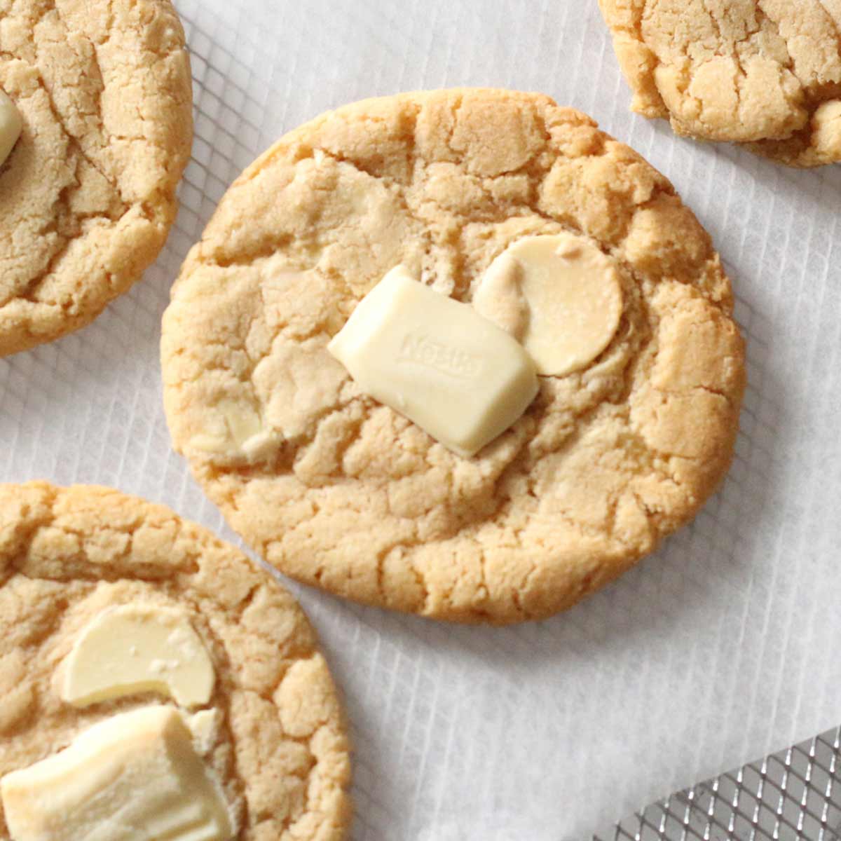 Cookie Dough covered in Milky Bar Chunks topped with White Chocolate and Chocolate Sauce