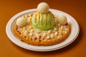 Waffle with White Chocolate Sauce and Crushed Oreos