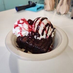 Triple Chocolate Brownie chunks blended with Vanilla IceCream & decorated with Milk Chocolate Sauce