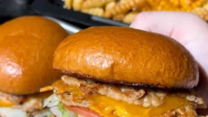 Juicy smashed Chicken Patties, Cheese, Lettuce, Tomato,